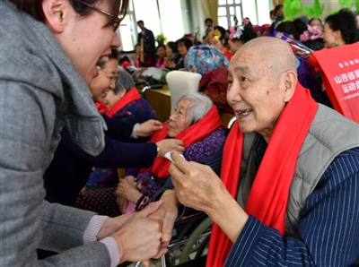 当日,山西省太原市杏花岭区的一家养老院开展主题为“爱老、敬老、助老”的新年慰问演出,来自太原市老年大学的80余位学员为养老院老人们献上精彩的表演,迎接农历新年。