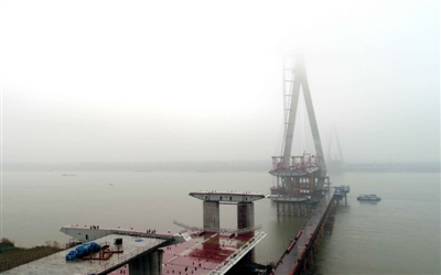10日,嘉鱼长江公路大桥南主塔,大型机械正在吊装桥面钢箱梁。据了解,截至去年12月底,项目累计完成投资24.2亿元,占概算总额的77.1%,南北主墩索塔(含塔冠)已完成封顶,钢箱梁及斜拉索施工正稳步推进,预计今年年底建成通车。