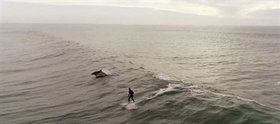 近日,一则在美国南加州海岸附近拍摄的无人机视频记录下一个千载难逢的精彩瞬间。画面中显示,一群海豚同冲浪者一起“弄潮”,自由嬉戏,像是在为一位冲浪者“保驾护航”。