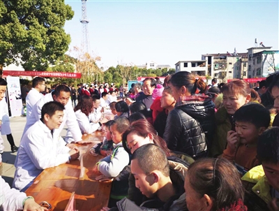 23日,由省卫生健康委员会、咸宁市政府主办的“健康扶贫荆楚行”启 动仪式在市中心医院举行。当日,咸安区高桥镇有130人次儿童得到了免费医疗服务,中心医院工作组还发放了小儿科普台历500份。通讯员 汪姣慧 沈隽宁 摄