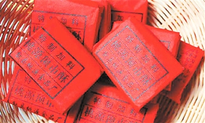 顶市酥是徽州的特色糕点,又被当地人称为“红包”。顶市酥早在南宋即有记载,闻名于明清,也是古代徽州书生进京赶考必带的随身物品。据传乾隆皇帝下江南,吃了一块用红纸包起来的糕点后,赞不绝口,说这是顶好的糕点,于是人们就将它称为顶市酥。旧时一般人家都很穷苦,过年没钱给拜年的孩子们做压岁钱,长辈就用顶市酥代替红包,塞进孩子的口袋。所以,顶市酥与红包意义相似。顶市酥色泽淡黄,味道酥甜,香味四溢,历来深受人们喜爱。民谚说,“拜年不带麻酥糖,请君不要进厅堂”,由此可见,顶市酥是徽州人春节走亲访友不可或缺的糕点。顶市酥的原料为面粉、芝麻、白糖和饴糖,上品顶市酥抓起成块,提起成带,香味醇厚,入口香甜,且保质期长。