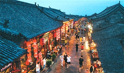 因为人太多,在古城里自行车只能推着。平遥县衙里有专供游客拍照的“过堂”现场,县太爷、犯人、衙役等一应俱全;中国票号博物馆——日升昌里,讲述着山西票号的繁荣和兴衰;平遥城里还有文庙、清虚观、镇国寺、双林寺,很难想象,这样一座小城,却包容了多种宗教和多元文化;马面的墩台、城墙的角楼、城门的炮台和城外的护城河,无不透露出古人的智慧。