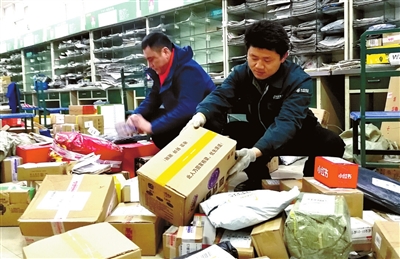 正月初二,市邮政公司温泉投递站分拣员镇百春在分拣包裹。春节期间,该站20多名分拣员依然坚守在工作一线,确保节日邮件包裹按时送到用户手中。咸宁日报全媒体记者 袁灿 摄