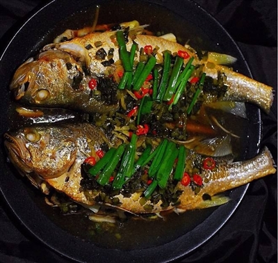 鲜香的雪菜烧制的黄鱼,鱼肉嫩,菜香浓,清口鲜洁,营养丰富,动植物蛋白互补,营养丰富,倍受食客青睐。