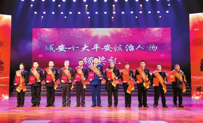 2月16日,主题为”弘扬法治精神,彰显法治力量”的咸安十大平安法治人物颁奖礼在市会议中心举行。在颁奖现场,播放了咸安区人民法院调研室主任、法官曹一平、咸安区官埠桥镇小泉村综治办主任沈晓平、湖北开成律师事务所律师周文宁、 咸安区公安分局刑侦大队民警姜子旋等十大平安法治人物的短片,展示了他们为法治咸安、平安咸安建设所作出的杰出奉献。在当晚的现场,还为勇救落水妇女的见义勇为好干部陈亚平颁发了平安法治特别奖项。