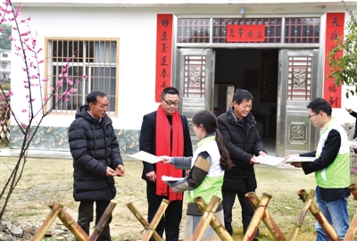 2月8日,通城县马港镇在外创业者向界上村村民送书拜年,宣传保护青山绿水,助力乡村振兴。
