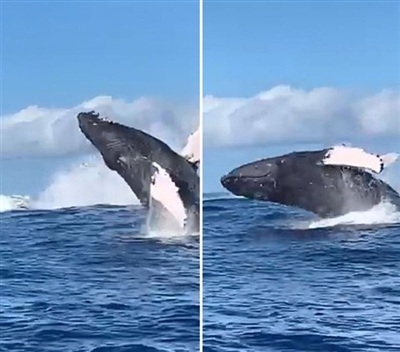 当夏威夷的站立式浆板爱好者们在不远处发现座头鲸跃出水面时,他们高兴地尖叫起来。凯西·戴利(Kathy Daly)捕捉到了这一刻,视频中可以听到这位业余摄像师反复大喊“天哪!”当这些鲸鱼在空中旋转时,她笑着一遍又一遍地大喊“太帅了!”希望这种奇观能再次出现。