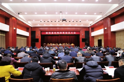 本报讯 全媒体记者陶然、甘源通讯员程钊、吴荣报道:3月4日,崇阳召开机构改革动员大会,贯彻落实党中央和省委市委关于推进机构改革精神,要求全县上下提高政治站位,统一思想认识,高标准、高效率、高质量抓好全县机构改革工作。