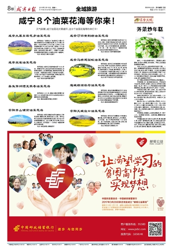推荐理由:咸安区马桥建国畈共有油菜3000多亩,按照“生态旅游、旅游观光、新农村建设”的思路,突出“产、观、吃、玩、购、游”特色,建有观景台、木栈道,编织稻草人,打造了一片花海迷宫,打通赏花道6条近10公里,形成环形赏花圈。马桥建国畈油菜花海是咸安举办春季赏花游主题活动的主要场地之一。