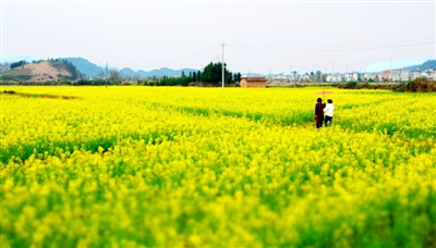 今年来,通山县大力推进乡村振兴,通过基础设施建设、产业发展、环境整治,全面升级打造宜居的美丽家园。图为通山县杨芳林乡高桥头村金黄的油菜花、黛瓦白墙的村居,构成浓淡相宜田园水墨画,吸引游客前往踏青游玩。