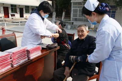 3月19日,县中医医院眼科、内科义诊队联合“北京医院眼科专家远程门诊”到县光荣院为老人们开展义务眼病筛查及内科检查。 此次共义诊100余人,发放价值2000多元的水果、药物。 通讯员 徐燕飞 摄