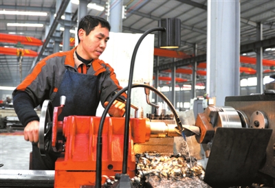 11日,通山县经济开发区工业园,来自南林桥镇的村民徐立光在星光玉龙机械(湖北)有限公司房内进行车床外加工。