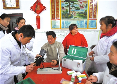 | 入户随访为慢性病患者检查身体 |