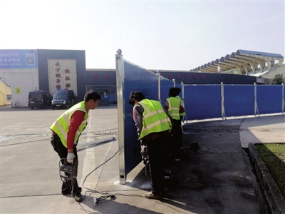 近日,家住市体育中心对面的王女士发现,市体育中心门口的道路被竖起了围挡。这是在做什么工程呢?