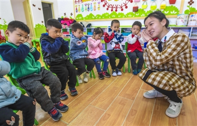 3月21日,在河北省大厂回族自治县城区第三幼儿园,老师为孩子们讲解健康睡眠常识。