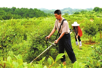 周新敏之前一直在广州从事基桩工程,积攒不少积蓄,2014年回乡,流转了村里300多亩山地,自掏腰包7万元开垦荒山种植油茶,雇佣当地不少贫困户来干活,每天100元工资。