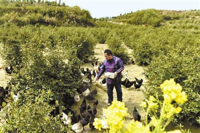 春日的午后,在马港镇高峰村油茶果基地里,公鸡在油茶林下扑打着翅膀。贫困户徐辉升边除草,边开心地说,在黄袍山绿色产品公司的帮扶下,尝试“油茶+茶叶+药材”种植新模式,百亩油茶地间种白芍、黄精等药材,亩产值2000元,油茶进入丰产期后,每亩还有近3000元的纯收入。全县油茶林中间作套种药材面积近2万亩。