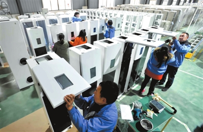 8日,赤壁市高新区霍尔新风科技有限公司车间,工人们正将一批新风机打包外运。据了解,该公司是国内目前产品种类最全、生产规模最大的新风产品生产基地,年产新风产品20万台套,产品广泛应用于医院、学校、房地产等领域。今年开年后订单不断,全年销售收入有望破亿元。