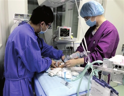 因早产新生儿各器官没发育好,尤其是肺部,肺泡张不开,通气和气体交换严重受影响,所以生后进行性呼吸困难加重,发绀,呻吟,呼吸费力,呼吸中枢也没发育成熟,生命受到严重威胁。面对此情此景,宝宝父母考虑到经济问题,且儿子各方面发育不成熟,尤其担心的是宝宝日后可能会留有后遗症,顿时放弃了对宝宝救治念头。面对此情,程主任心急如焚,一边安排抢救,一边耐心做家长的工作:“宝宝都是父母身上掉下来的肉呀,哪怕只有1%生的希望,我们也要付出100%的努力抢救。”最终,父母感动地表示要和全体医护人员全力抢救宝宝。