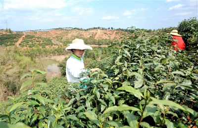 21日,崇阳县石城镇九秀岭茶叶基地,茶农们正在采摘茶叶。据了解,该基地于2013年开始栽茶,由原来的低丘岗地改造而成,占地600亩。目前,茶农们正抢抓晴好天气采摘明前茶。