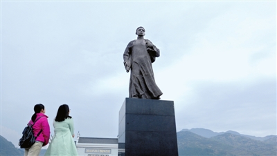 在荻田河对岸,新建的元帅广场罗荣桓元帅大型雕塑巍然矗立在通城秋收暴动纪念馆正前方,慕名而来的游客驻足瞻仰。