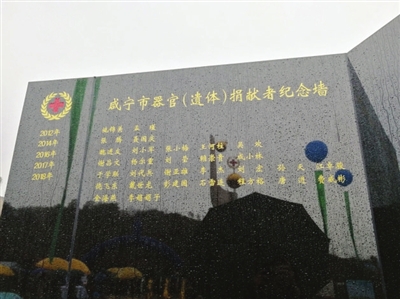 纪念墙上,镌刻着30位通过咸宁市红十字会完成遗体捐献和人体器官捐献者的名字。