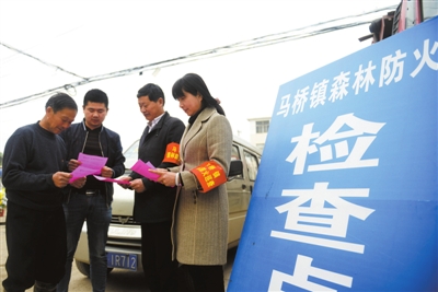 3日,咸安区马桥镇党员干部在高赛村为村民发放防火宣传资料。