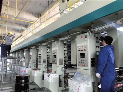连日来,在全鸿塑业公司,工人们正在安装新设备,厂区建设呈现一派繁忙景象。