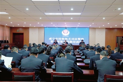4月9日上午,市检察机关司法警察第七期警务技能培训班在通山县检察院开班,各基层院分管司法警察工作领导以及全市两级院40名司法警察参加培训。