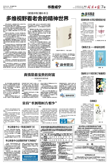 在《老舍评传:增补本》中,享受国务院政府特殊津贴的学术专家、中国社会科学院教授关纪新以全新的、宽泛的文化视野诠释了“老舍与中华民族精神文化构建”,这在一定程度上丰富与增进了迄今为止的“老舍研究”。