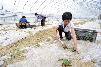 9日,位于咸安区双溪桥镇的咸宁四季腾龙农业开发有限公司基地大棚里,村民忙着移栽黄瓜苗。