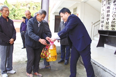 近日,市邮储银行行长文谟军携员工14人,来到通山县大畈镇和平村,慰问23名留守人员,为他们送去了慰问品。去年一年,市邮储银行不断强化扶贫举措,狠抓落实,精准施策,驻村精准扶贫工作取得实效。