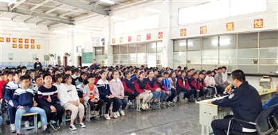 4月17日上午,咸安区向阳湖镇宝塔中学邀请镇司法所、派出所干警,给全体学生讲授普法教育课,引导学生学法、知法、守法,推进和谐平安校园建设。