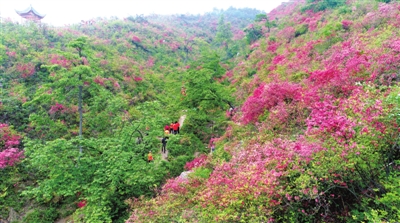 26日,通山大幕山森林公园,绽放的杜鹃花绵延起伏,引来大批游客赏花、品花、体验生态旅游。
