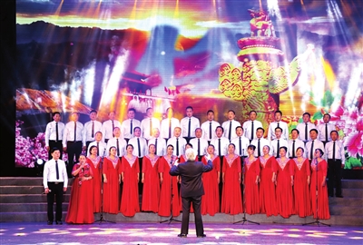 “今天是你的生日我的中国,清晨我放飞一群白鸽……”晚会在合唱《今天是你的生日》《共筑中国梦》豪迈激昂的旋律中拉开序幕。