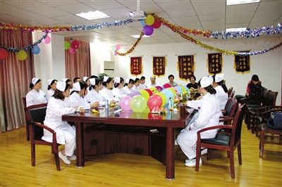 9日下午,通山县安康精神病医院的医务人员欢聚一堂共同庆祝第103个“5·12国际护士节”。活动中,院长致祝贺词,肯定了全体医务人员过去一年的工作,同时希望全体医务人员为医院发展再接再厉,并为优秀护士颁奖,优秀护士代表作了发言。“护理知识有奖竞赛抢答”的环节更是展示了医护人员青春飞扬的精神面貌和医护救死扶伤的信念。
