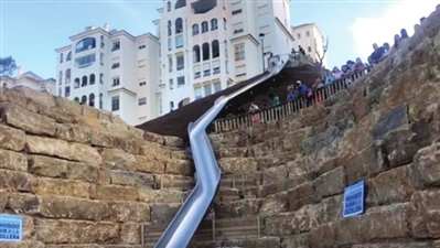 西班牙小镇埃斯特波纳一座38米长的滑梯太陡、太长,致使多人受伤,开放不到一天即停止使用。这架金属制滑梯建在埃斯特波纳城区,连接上、下两条街道,初衷是方便人们出行,把通常步行10分钟的路程缩短至一分钟内。