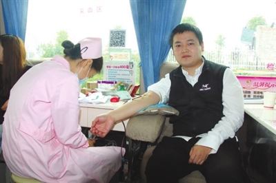 该集团员工李剑携妹妹一起献血,并笑着对记者说:“我认为无偿献血就像汽车换机油一样,抽出旧的血液,让身体再生出新的血液,献血对人体有益无害。”