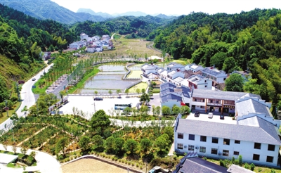 5月16日,无人机航拍的崇阳县铜钟乡坳上村一角美景如画。