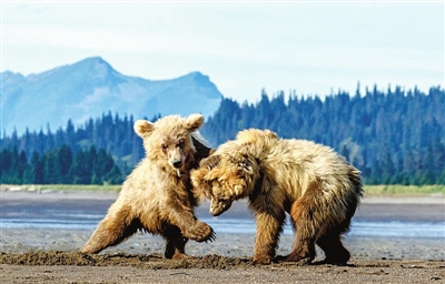 近日,野生动物摄影师卡隆·斯蒂尔(CaronSteele)在美国阿拉斯加州一条河的岸上拍摄到了一组两只幼熊打斗的照片,画面超级可爱。图片中,两只淘气的棕熊幼崽在泥地里打斗,其中一只被摔倒在地,用爪子顶住另一只的下巴。它们时而在地上打滚,时而站起来相互撕咬,发出一阵阵咆哮声,场面可爱极了。