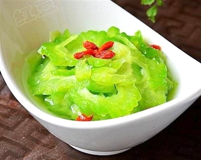 中医认为:苦瓜味苦,性寒冷,能清热泻火。苦瓜的微苦滋味,吃后能刺激人体唾液,胃液分泌,令人食欲大增,清热防暑。因此,夏吃苦瓜最相宜。不仅如此,苦瓜热量很低,含有丰富的纤维,是利于减肥的佳品。