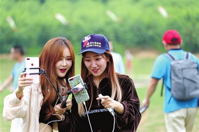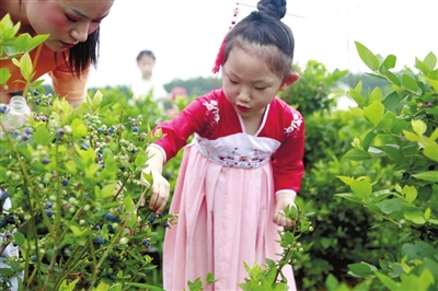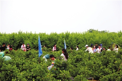 下水抓泥鳅的市民们还没有玩过瘾,在激情摇滚乐中,又来到了旁边池塘体验钓龙虾。而一些女士则早已进入了果园中寻宝,有的拎着袋子蹲在蓝莓树下采摘,有的与孩子们边采摘边玩乐。