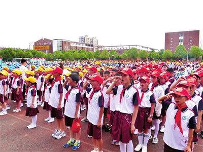 据悉,本届艺术节共分五大环节,即“红歌献祖国”、“美术作品展”、“新队员入队仪式”、“体操比赛”和“跳蚤市场”。29日上午,全校拉歌后,小朋友们表演了精彩的舞蹈和葫芦丝开场节目,紧接着开始红歌比赛,全体学生人人参与,28个班按班级顺序逐一登台展示本班风采。孩子们甜美的歌声唱出了心中的激情和梦想,唱出了对祖国的祝福与热爱,唱出了对未来的憧憬与希望。下午2时,举行了入队仪式。全校466名阳光少年举起右手,在队旗下庄严宣誓“我志愿加入中国少年先锋队,……”,充满仪式感的孩子们激动盈满心间,笑容挂在脸上。随后举行体操比赛。每次同年级两个班上场,评委当场亮分。孩子们一个个精神饱满、斗志昂扬,合着《七彩阳光》的口令律动起来,学生队列整齐、着装统一、动作划一,宏大壮观的场面构成了一种别样的校园风景。而与此同时,教学楼大厅“我的世界环球之旅(下)”美术作品展也正式开展,共展出学生优秀作品300余件,孩子们用灵巧的小手创作出了一件件栩栩如生的作品,从一个侧面展示出了该校艺术教育的新成果。