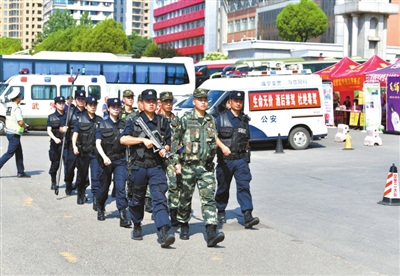 不止交警和医务人员,民警、城管、环卫等部门工作人员,也全身投入护考工作之中,为考生们提供细致服务。