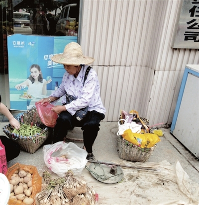 夏细针今年已经63岁了,但仍然坚持每天出来卖蔬菜。附近的居民早上八点多出门,准能看见夏细针。