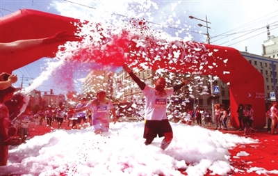 近日,乌克兰基辅,当地举行“彩色跑”活动。自2012年1月,美国第一次举办“彩虹跑”,这一充满色彩的趣味活动已经传遍全球各地。
