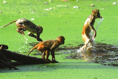 近日,印度阿拉哈巴德,多地遭遇高温天气,猴子在池塘里泡水消暑,口干舌燥疯狂找水喝。过去数天当中,印度大部地区连续遭受热浪袭击。据印度国家气象局公布的数据,过去数天里印度大部分地区气温普遍高于往年平均水平,中央邦、马哈拉施特拉邦、喜马偕尔邦等许多地方的最高气温比正常水平高出5摄氏度以上。
