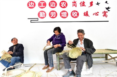 11日,崇阳县桂花泉镇横山村扶贫车间,当地村民正在车间里编织竹制品。