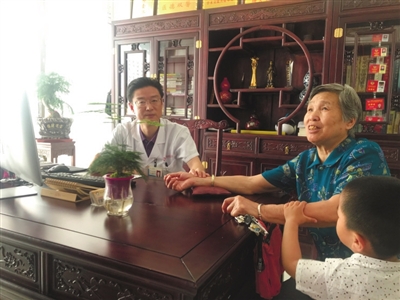 淡淡的药香味,古香古色的装修风格,4日,记者走进位于温泉银泉大道的冲和堂医馆内,身穿白大褂的皮定宇刚刚接诊完一位病人。