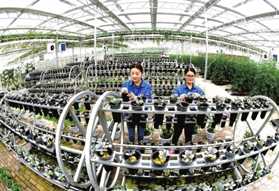 16日,赤壁市车埠镇小罗湖现代农业融合示范园,技术人员正在进行无公害蔬菜育苗。